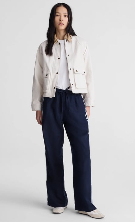Whatever vibe you’re shopping for—professional, laid-back, dressed-up—Madewell is your one-stop shop for women's pants. Shop Madewell's vast selection of pants for women in fresh shapes, styles and fabrics. From baggy jeans to tailored chino pants or flexible activewear leggings, Madewell has an option for every style and occasion. No longer stuck in the ‘90s or 2000s, cargo pants for women are definitely back. Combining a relaxed shape with oversized side pockets, cargo pants seamlessly blend both comfort and style. Looking for a streetwear vibe? Opt for a slouchy, low-slung, straight-leg cargo pant in a smoky charcoal and pair it with a fitted graphic tee. Searching for something more elevated? Try a pair of cargo pants in a supersoft, lightweight fabric and a cropped tee in a classic color. More of a minimalist? Collect a few pairs of women's pants in timeless cuts to wear on repeat. For an extremely versatile option, grab some straight-leg pants. You can find a wide assortment of straight-leg pants for women in a variety of fabrics, including signature denim, faux leather, recycled Italian fabric or Madewell's Softdrape weave. Trying to insert some character into your closet? Add some patterns and prints like subtle plaid, quilted patchwork or textured corduroy in bright colors. On the other side of the spectrum, you have wide-leg pants. If you're looking for wide-leg women’s pants with a casual feel, go for a pull-on pair in a lightweight fabric. For a more dressed-up vibe, try our viral Harlow Pant with a high pleated waist and wide legs (they’ve even been called “unicorn pants” because they are such a dream). Because of their dramatic shape, wide-leg pants for women pair well with a fitted top like a body-hugging tee, a vintage-y women's vest or a knit sweater tank or cami. Planning a well-deserved vacation? Don't forget to pack a few pairs of pull-on pants. For a tropical destination, pack pull-on pants that feature comfy elastic waistbands, airy fabric and bold prints. (And when you return, pull-on pants are perfect for lazy summer days at the local pool or for running errands around town.) Wherever you are headed, there’s a pair of women's pants that can fit your destination.