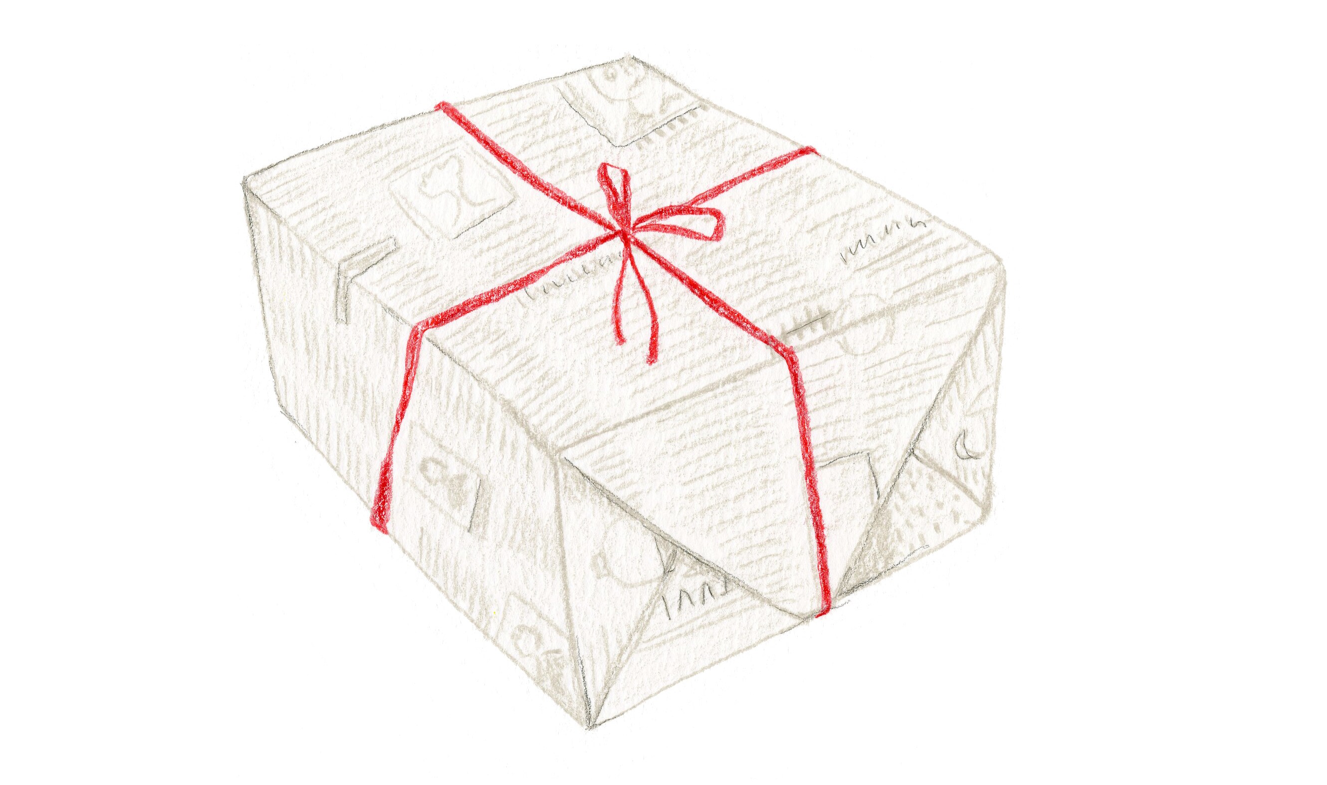 “I don’t buy wrapping paper. I make my own with pages from magazines or newspapers I have hanging around at home—just tape them together and draw on them. It makes the present feel more special because you put in the extra effort.”