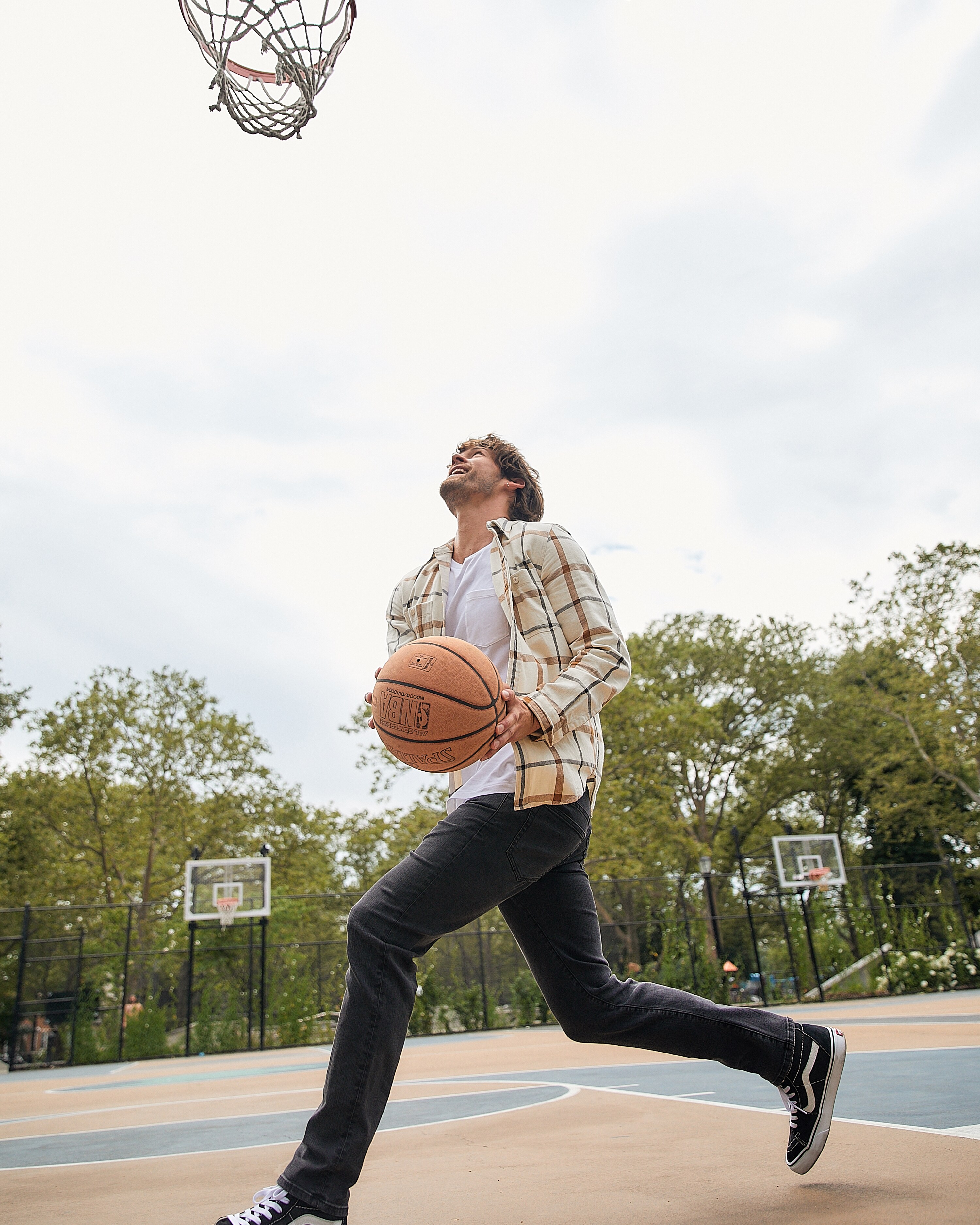 Wait, when did your jumpshot get so NBA-esque? Couldn’t do that in a pair of stiff khakis. Must be the superstretchy denim.