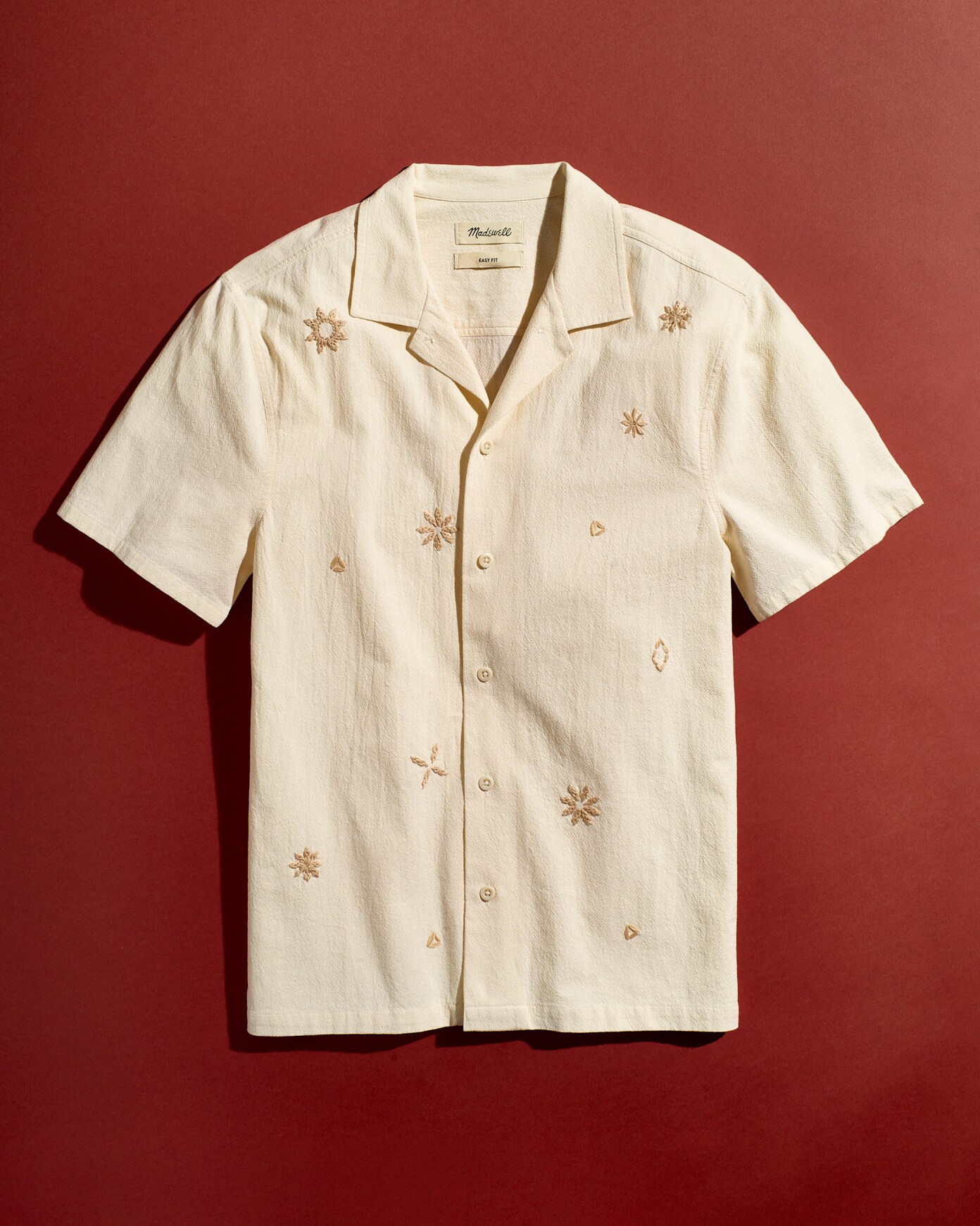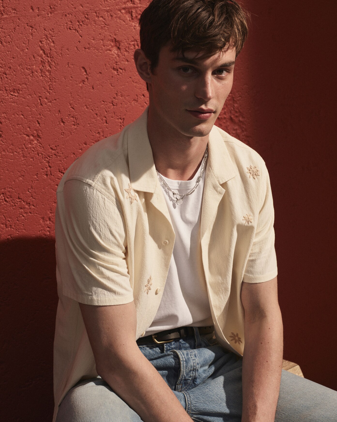 Unfussy, lightweight and made with natural fabric? Sign us up. Our custom embroidery ups the “Whoa, where’s that from?” percentage ten-fold. Wear it with our light wash denim for a classic summer vibe.