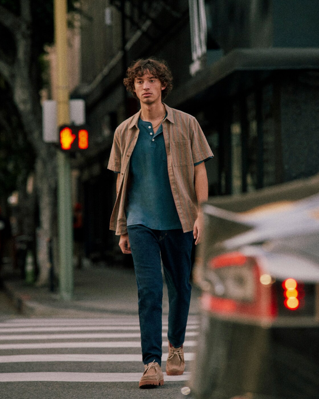 Dyeing after it’s cut and sewn, this process creates a soft-as-butter feel with a well-worn vintage look. Our relaxed fit option is a great add to the classic “T-shirt and button-up” combo.