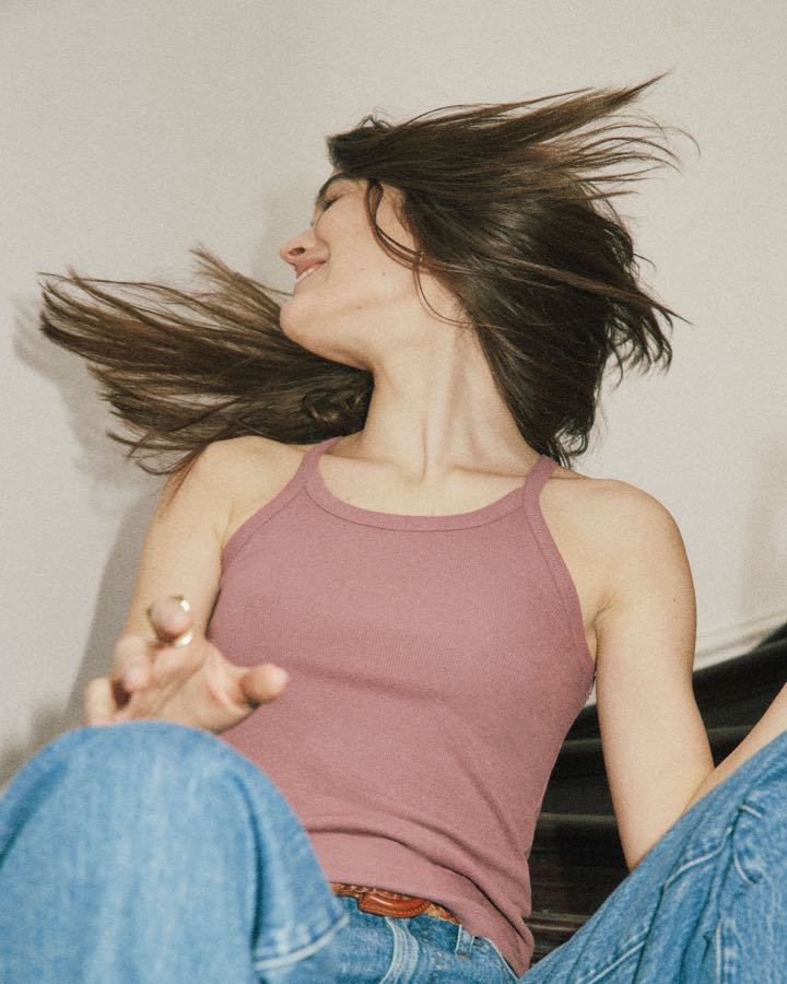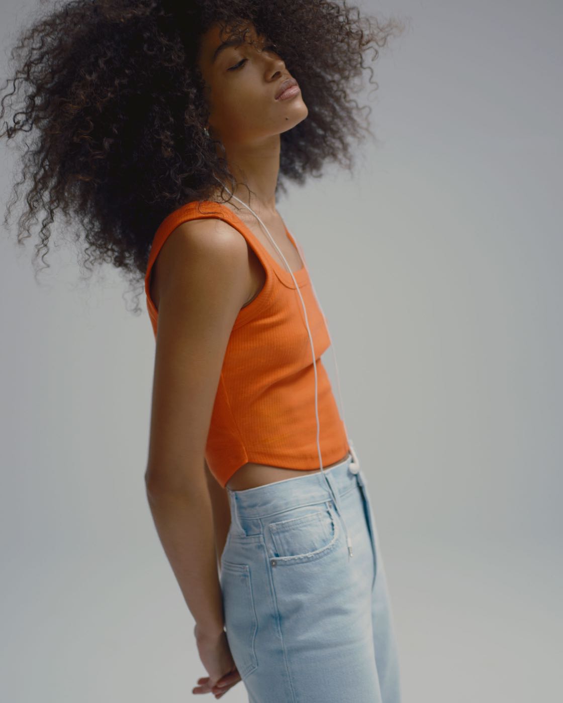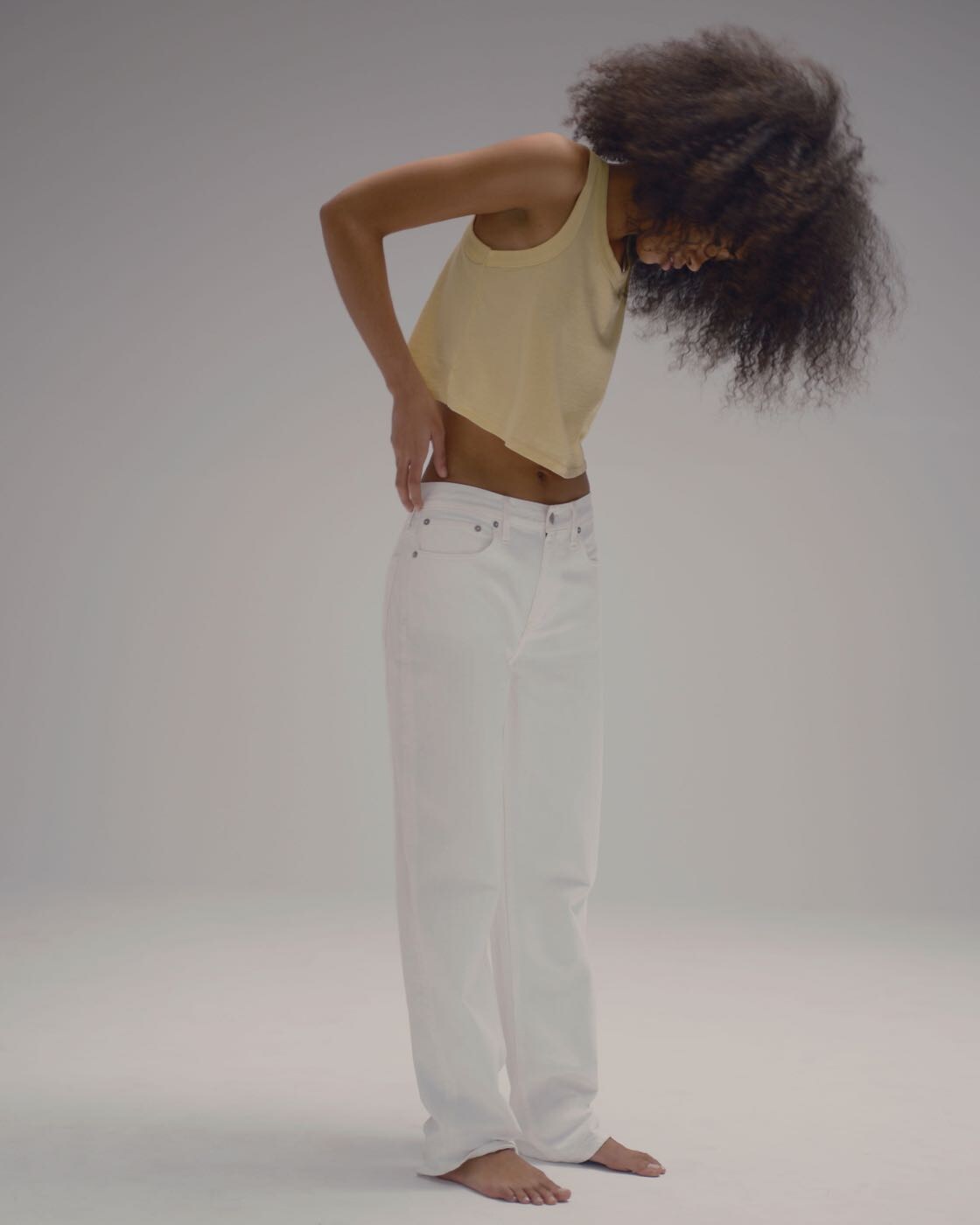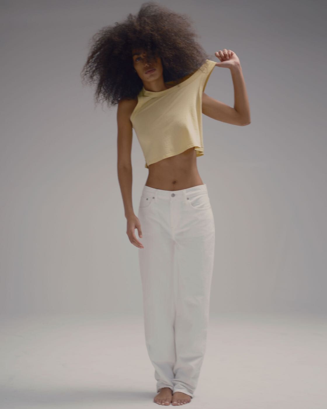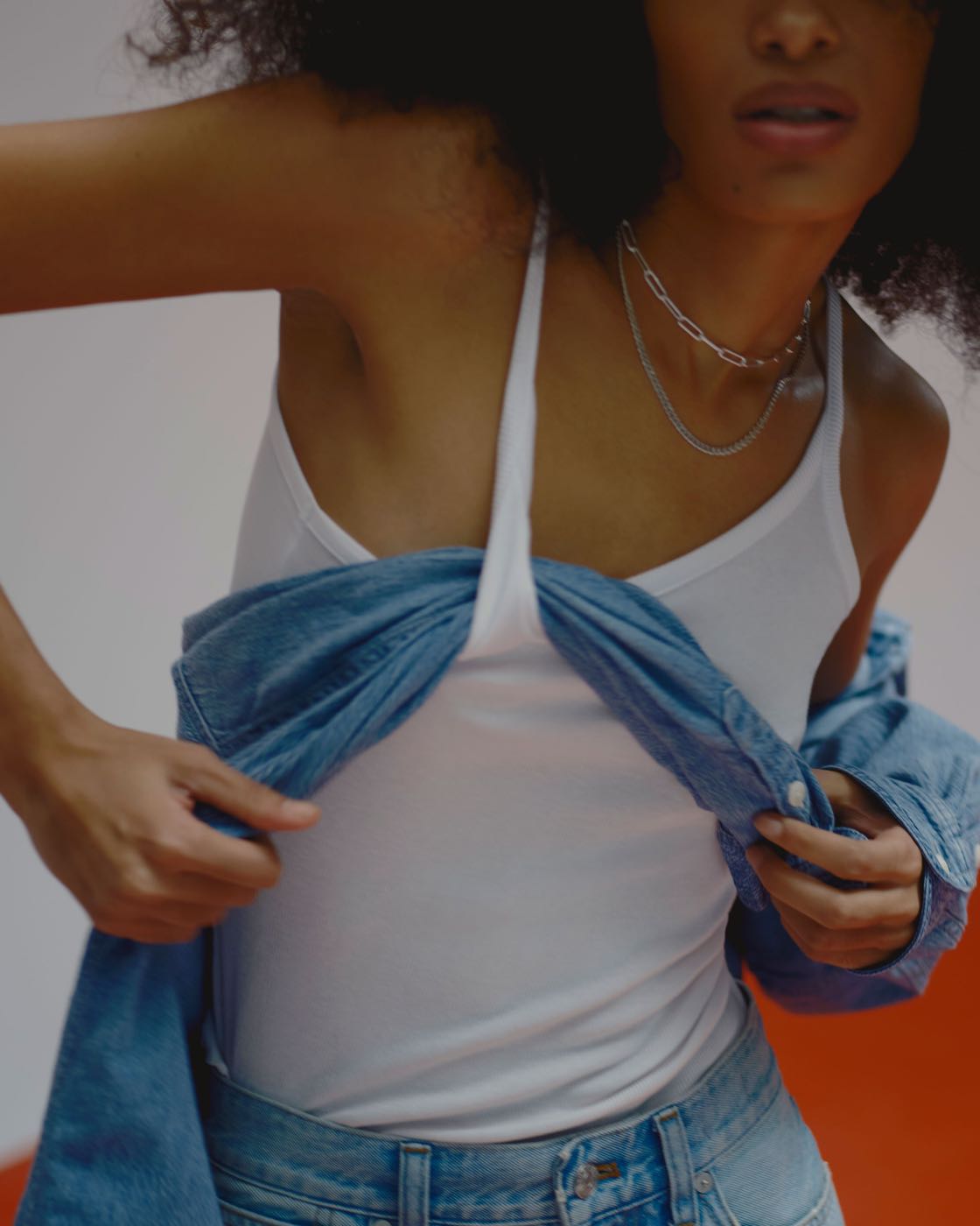 Our boxy tank is cropped at just the right length for high-rise styles, yet unexpected with a hip-hugging Y2K-inspired pair.