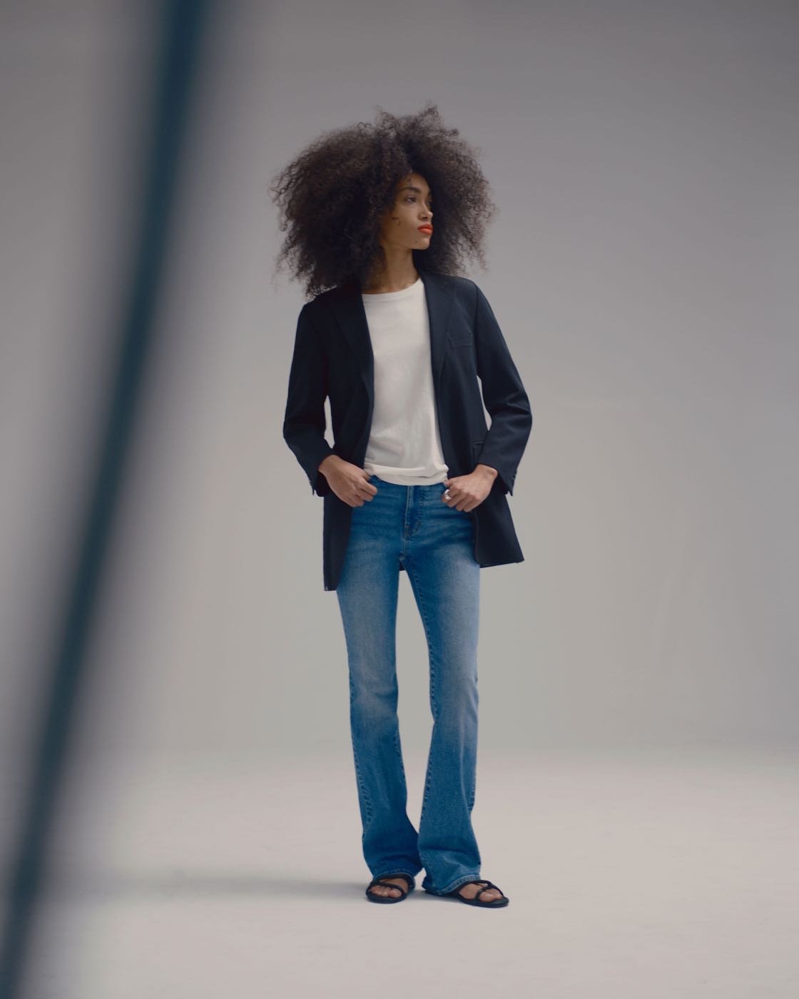 A relaxed T-shirt worn with flares keeps things cool and casual, but not too casual.