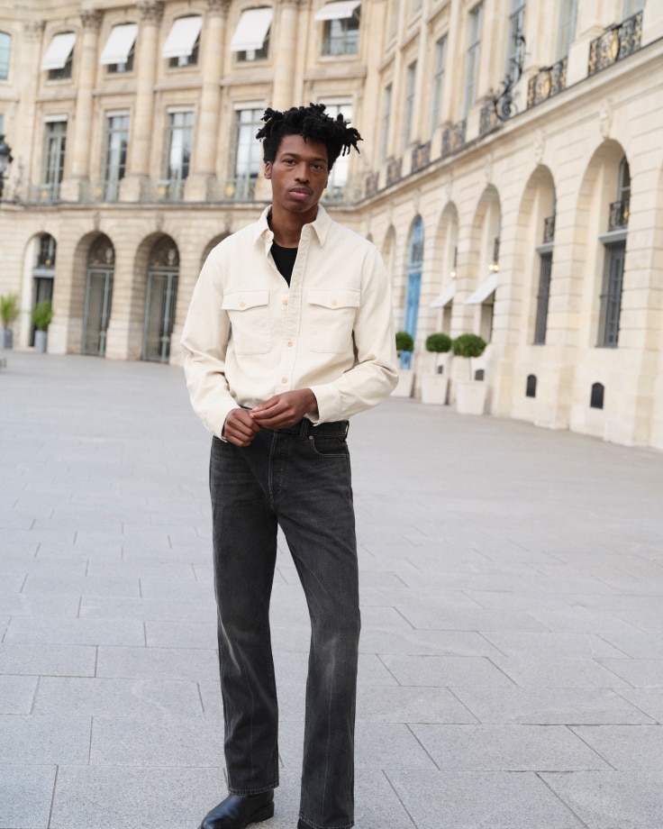 Inspired by classic menswear, this shirt features a refined open collar and a relaxed look, easily moving from day to night.