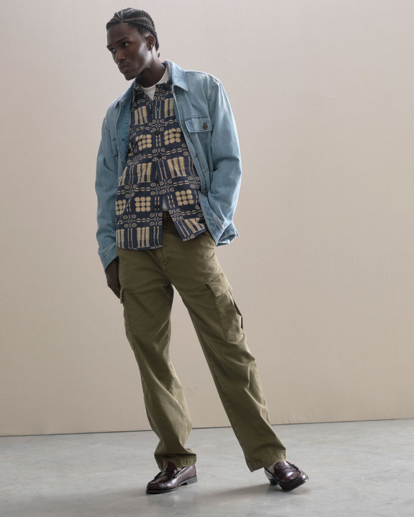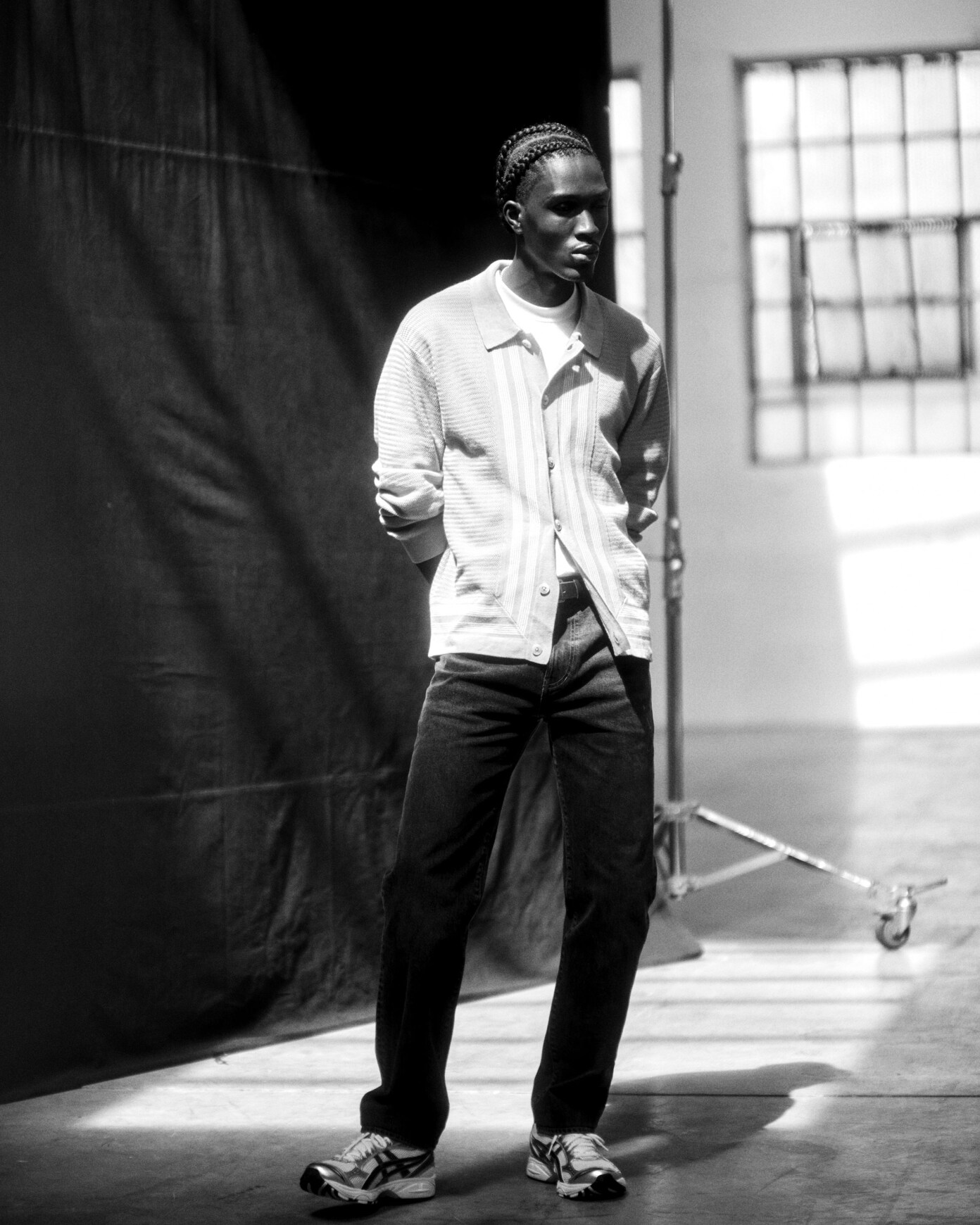 Blending intricate textures with a simple striped pattern, our long sleeve walks the tightrope between “easy-going layer” and “subtle statement piece.” Each colorway goes great with denim or our Oversized Chino.