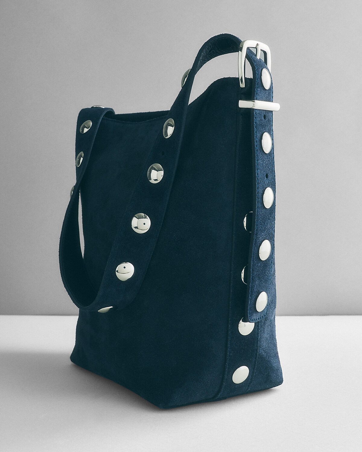 Soft suede, silver studs and spacious sizing—the perfect AM-to-PM piece.