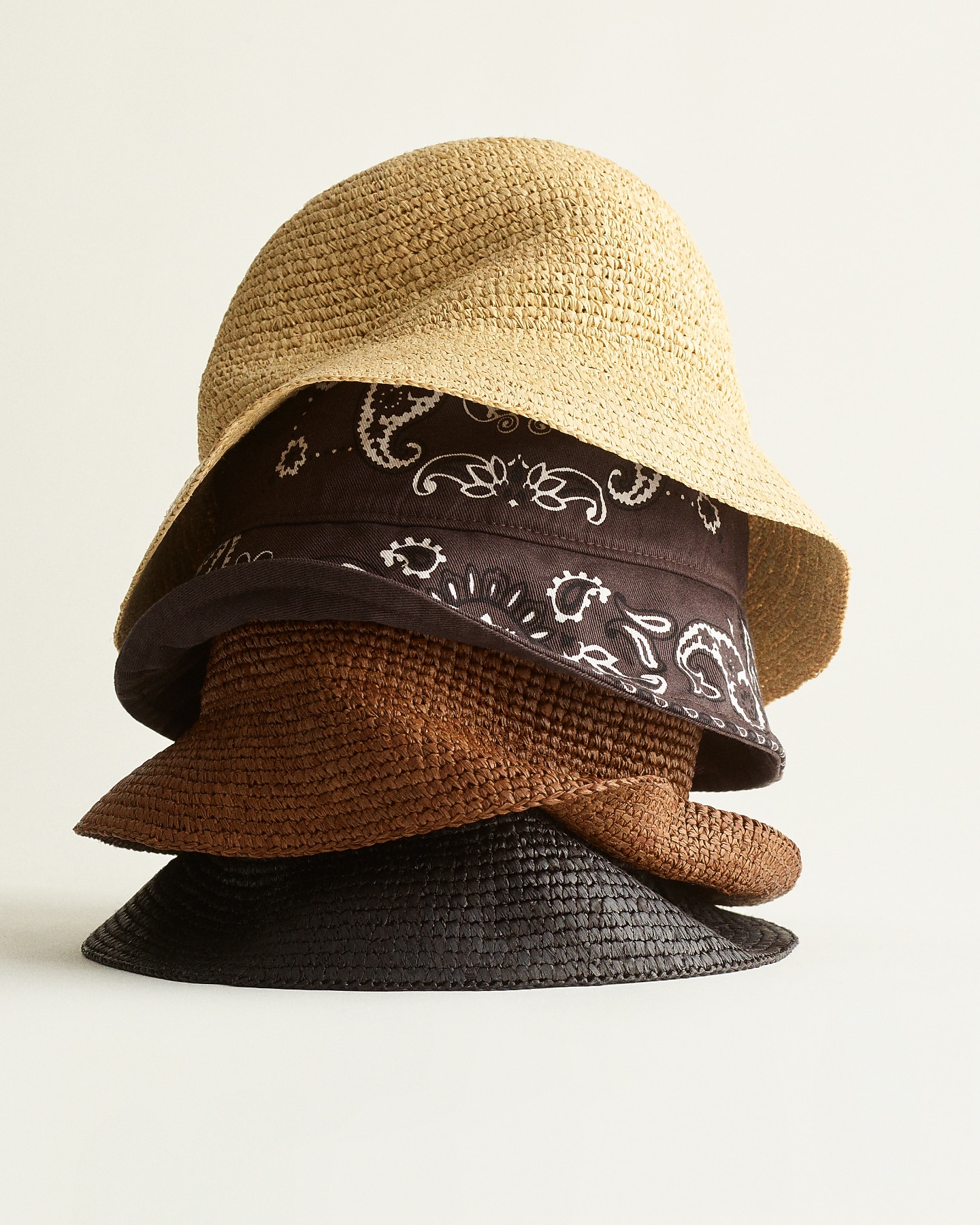 Hand-Crocheted Raffia Bucket Hat / Bandana-Print Bucket Hat